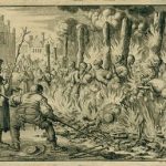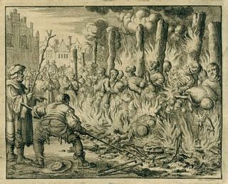 Bilden illustrerar de 18 anabaptistser som blev brända på bål i Salzburg år 1528